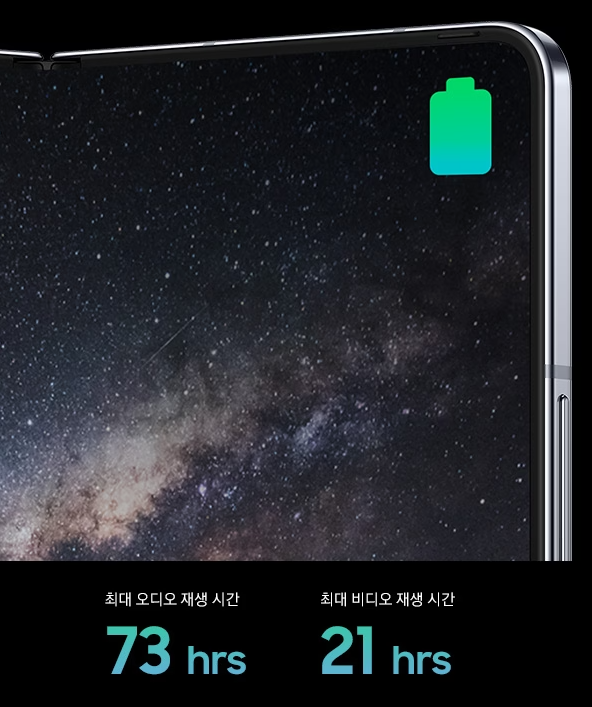 갤럭시 Z 폴드5의 4,400 mAh (Typical) 대용량 듀얼 배터리 시스템 덕분에
